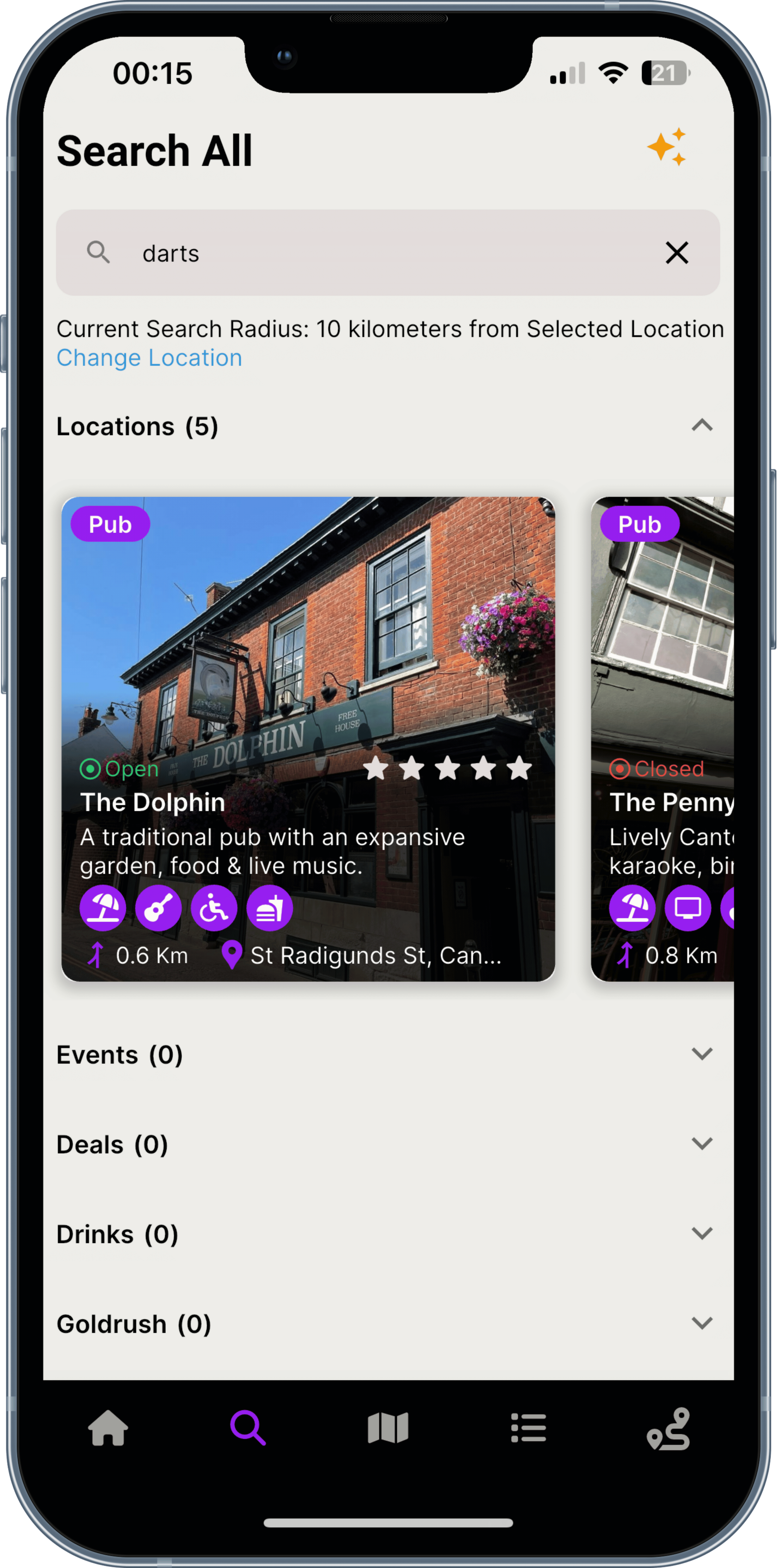 The GetTogether smart search allows you to search for specific features. Looking for a dart board? Search “Darts’”. Cold evening? Search “Open fire”. No more endless searching. More time enjoying you night out.